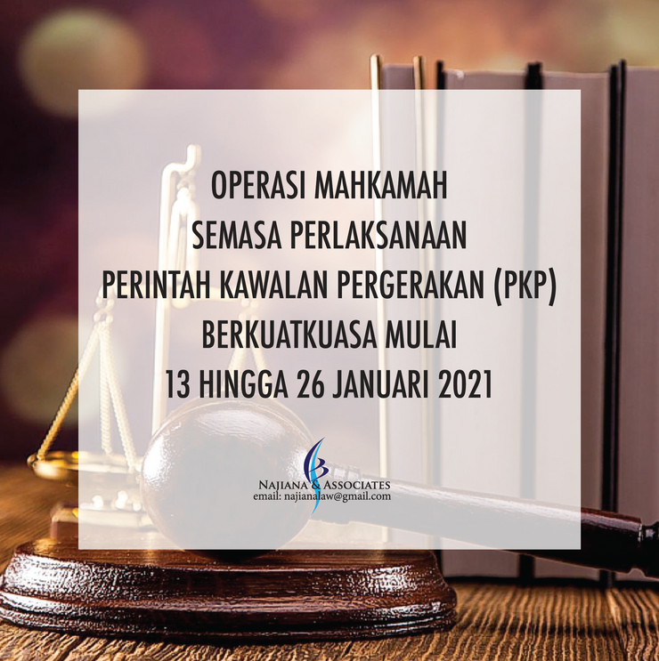 Operasi Mahkamah semasa perlaksanaan Perintah Kawalan Pergerakan (PKP) berkuatkuasa mulai 13 hingga 26 Januari 2021